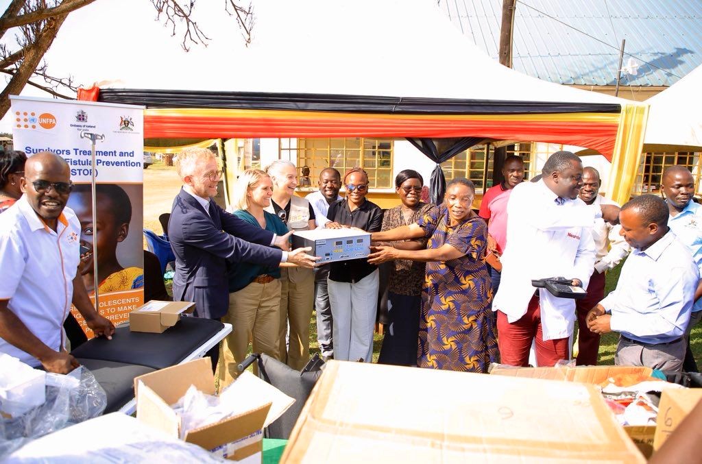 ACORD Uganda joins officials from; MoH, Embassy of Iceland, UNFPA and Namayingo District Local Govt to hand over healthcare equipment to Buyinja Health Center IV to improve repair and treatment of Fistula.